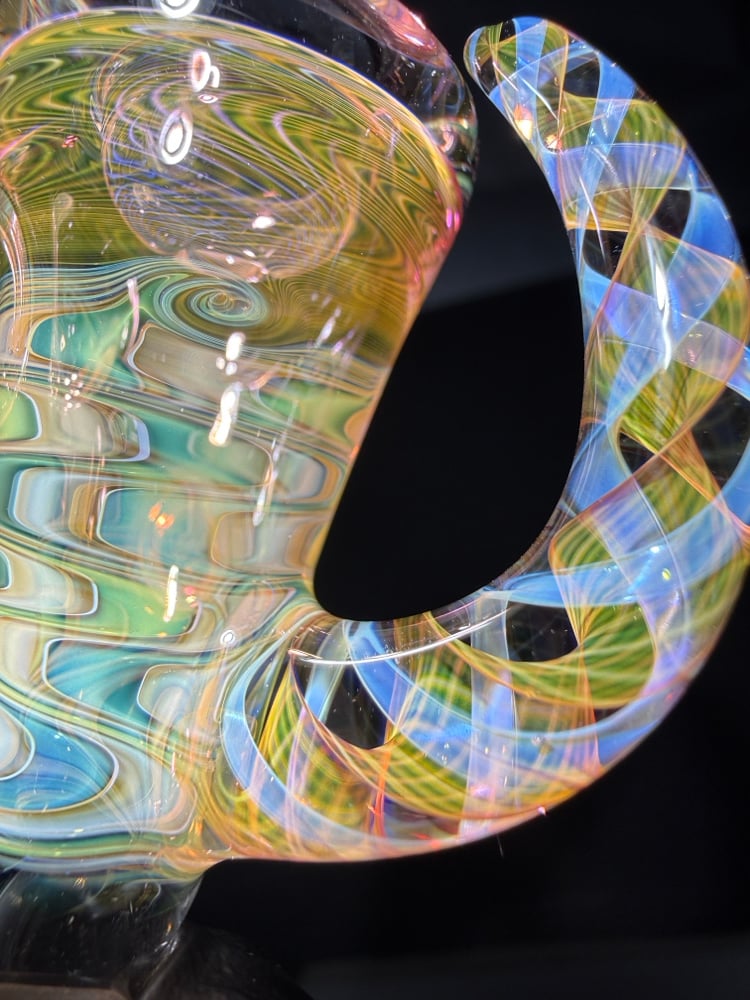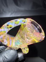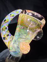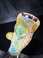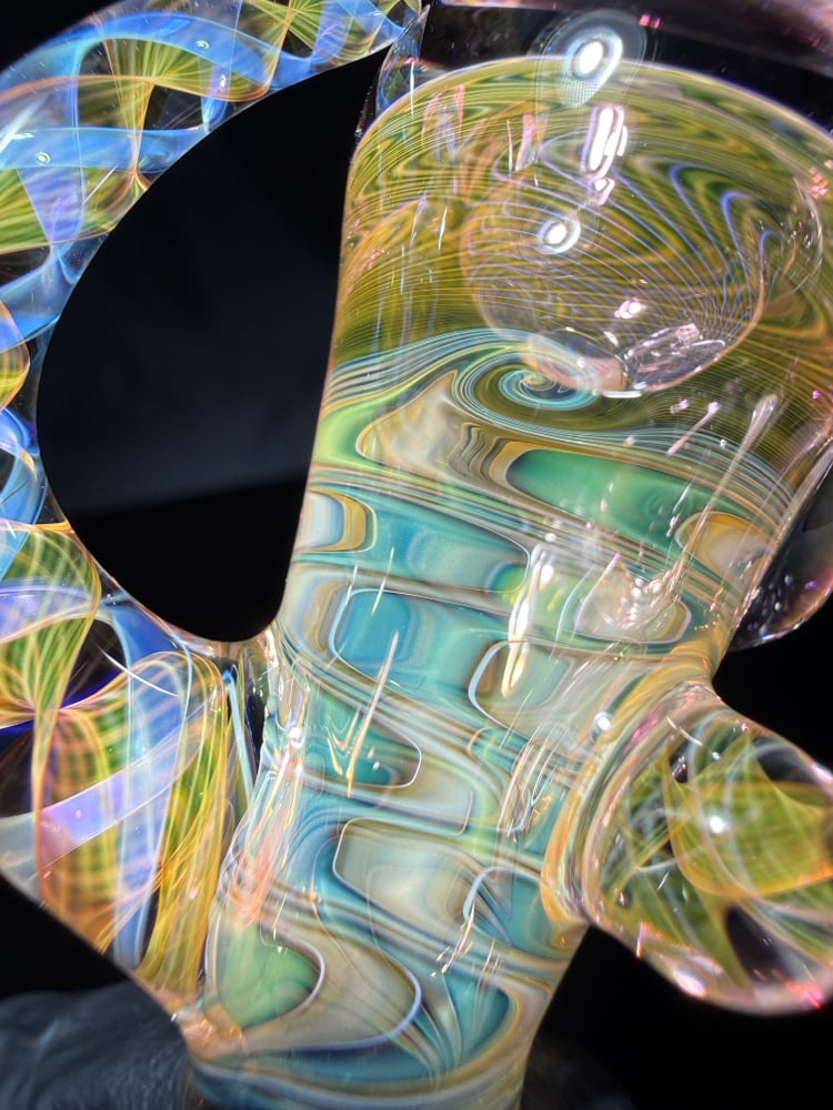 14 mm slide that is absolutely stunning, pinwheels blending sections together, vibrant, gold, and silver fume and that horn is bonkers