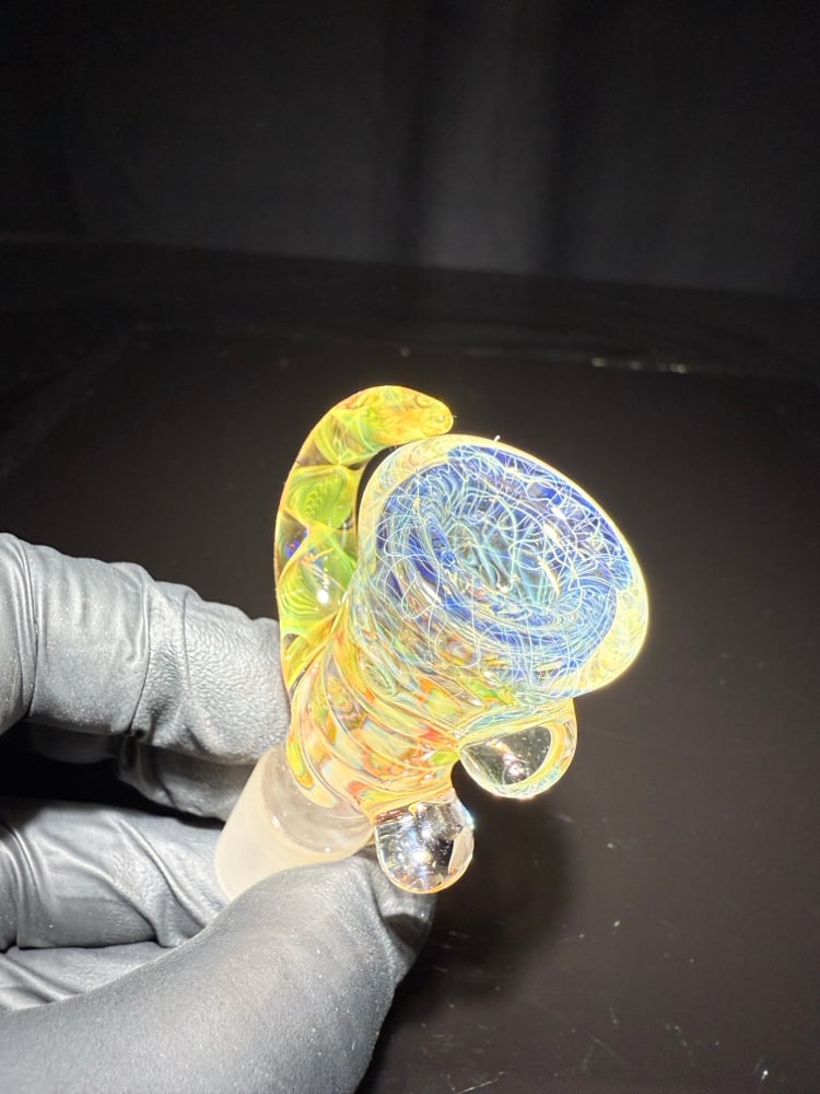 This new slide with an 18 mm joint is a mega crusher. Tons of silver stringer work along with pinwheels blending the two sections together.
